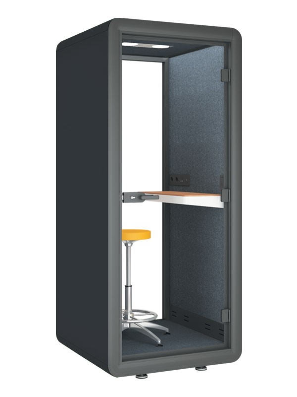 Un Phone Cube est une cabine compacte et insonorisée, fabriquée avec des matériaux de haute qualité tels que le verre trempé et les panneaux acoustiques. Son design élégant s’intègre facilement dans tout type de bureau.